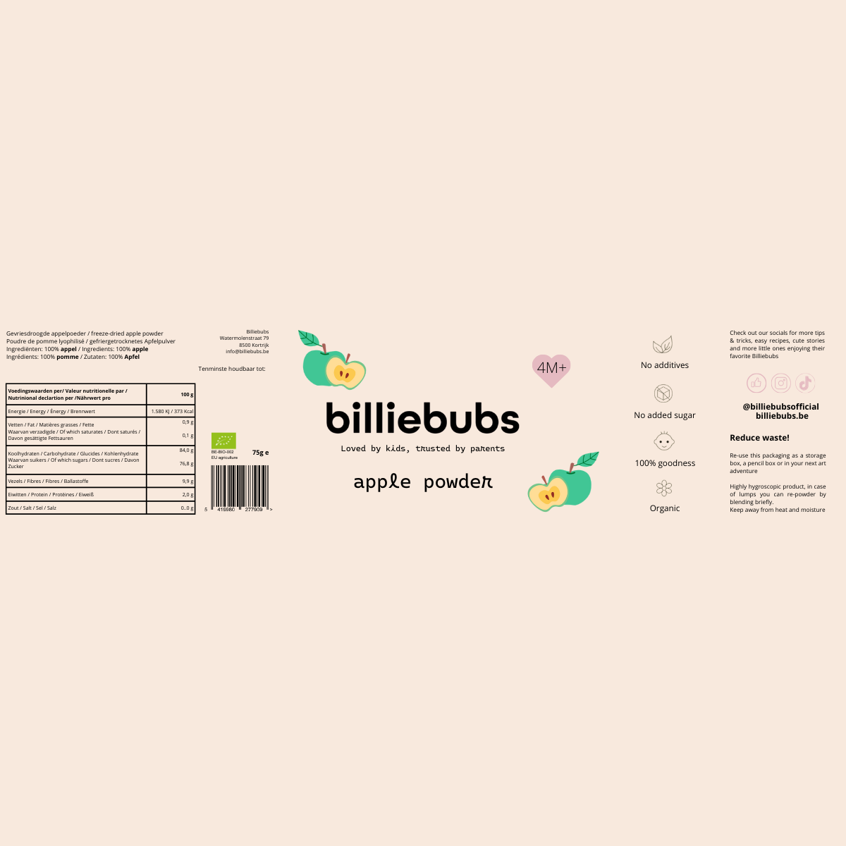 Ons heerlijke fruitpoeder gemaakt van 100% gevriesdroogd fruit is de perfecte aanvulling bij je Billiebubs ontbijt. Maak een heerlijke boterhamspread met cottage cheese en fruitpoeder, voeg een extra vitamineboost toe aan je yoghurt of smoothies of ga creatief aan de slag met gezondere fruitpannekoekjes.