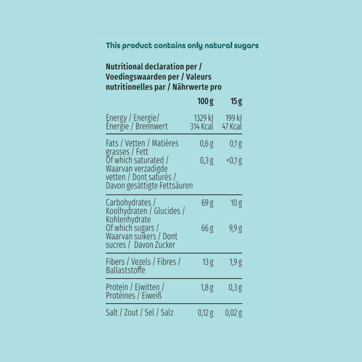 Ingrediënten: appel 98%, aardbei concentraat 2%, zwarte wortel concentraat, rozenbottel extract, antioxidant